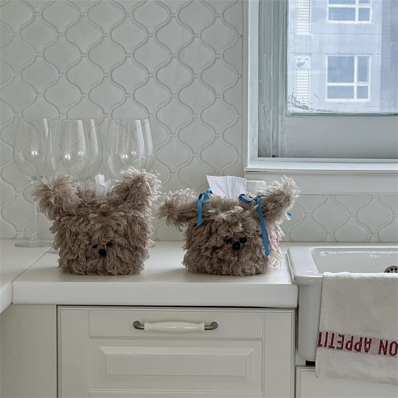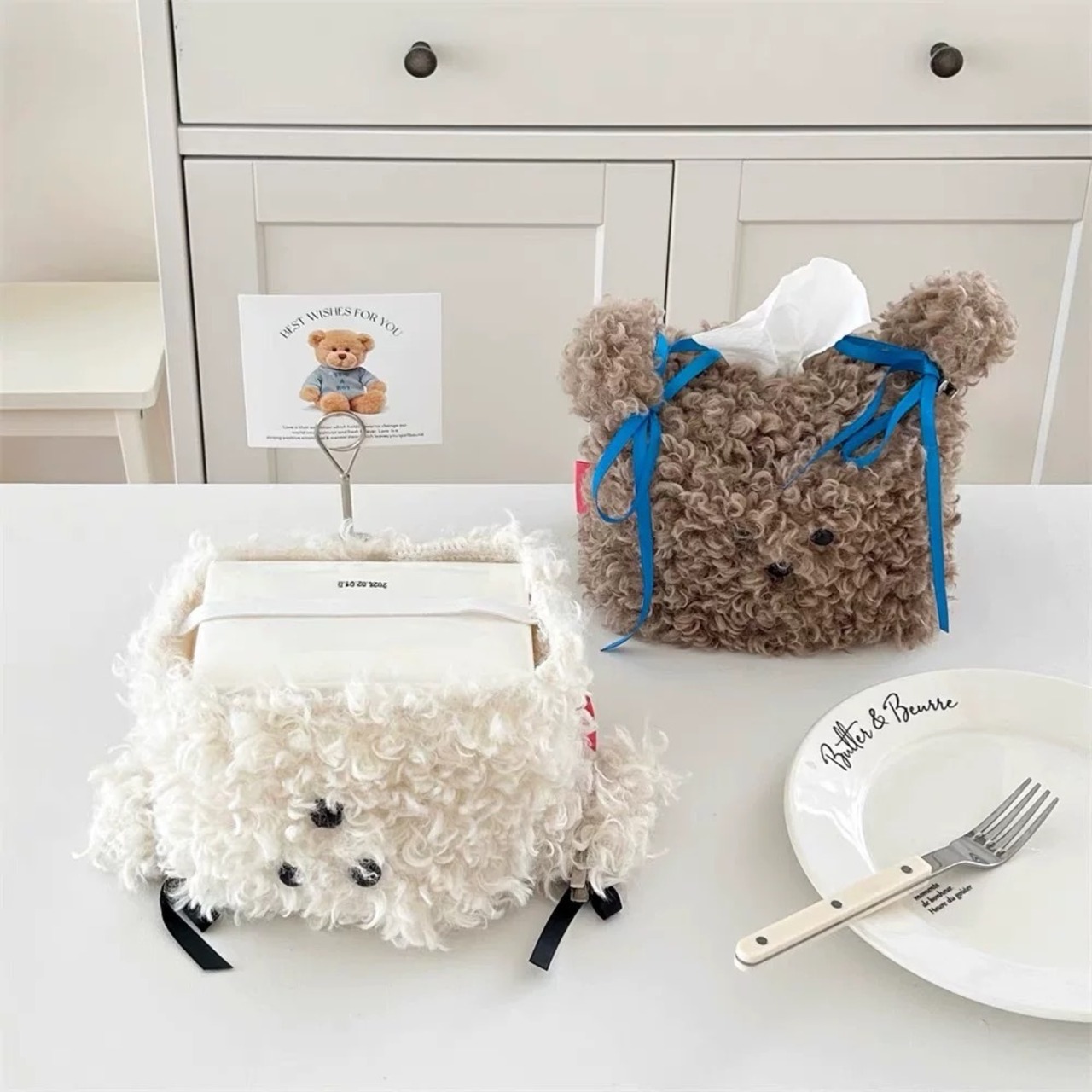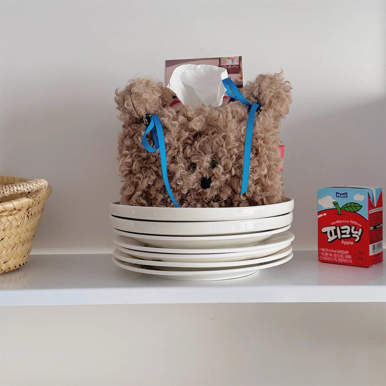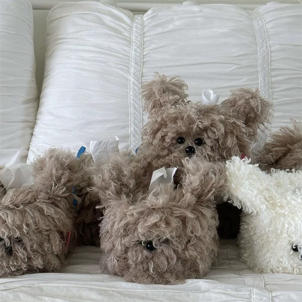 もこもこでかわいい!犬型ぬいぐるみのティッシュケースカバーです。リビングや車内がおしゃれで癒される空間に。インテリア雑貨としても存在感抜群!ボア素材のテディベア・ビションフリーゼ風デザイン♪